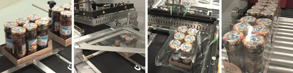 В упаковочной машине заложена возможность работы с двумя основными упаковочными материалами, а именно, термоусадочной полиолефиновой, сокращенно — ПОФ, и термоусадочной полиэтиленовой, сокращенно — ПЭ, пленками толщиной до 50 мкм. Упаковочный материал используется в рулоне в виде полурукава, Материал может иметь перфорацию, наносимую заранее или в процессе упаковки штатными перфорирующими устройствами, входящими в комплект упаковочной машины.