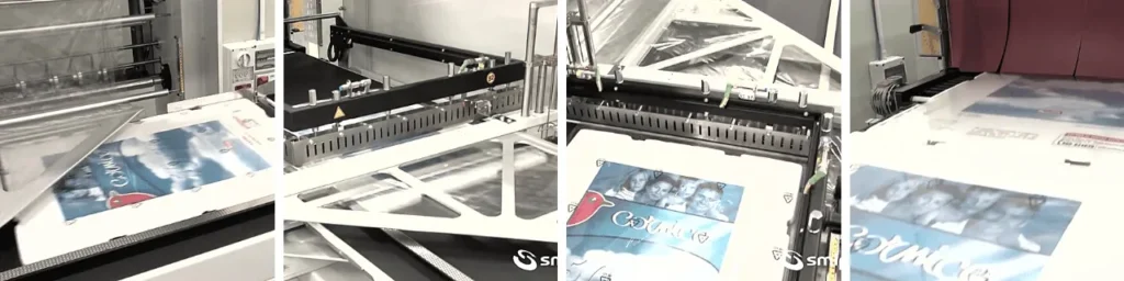 В упаковочной машине заложена возможность работы с двумя основными упаковочными материалами, а именно, термоусадочной полиолефиновой, сокращенно — ПОФ, и термоусадочной полиэтиленовой, сокращенно — ПЭ, пленками толщиной до 50 мкм. Упаковочный материал используется в рулоне в виде полурукава, Материал может иметь перфорацию, наносимую заранее или в процессе упаковки штатными перфорирующими устройствами, входящими в комплект упаковочной машины.