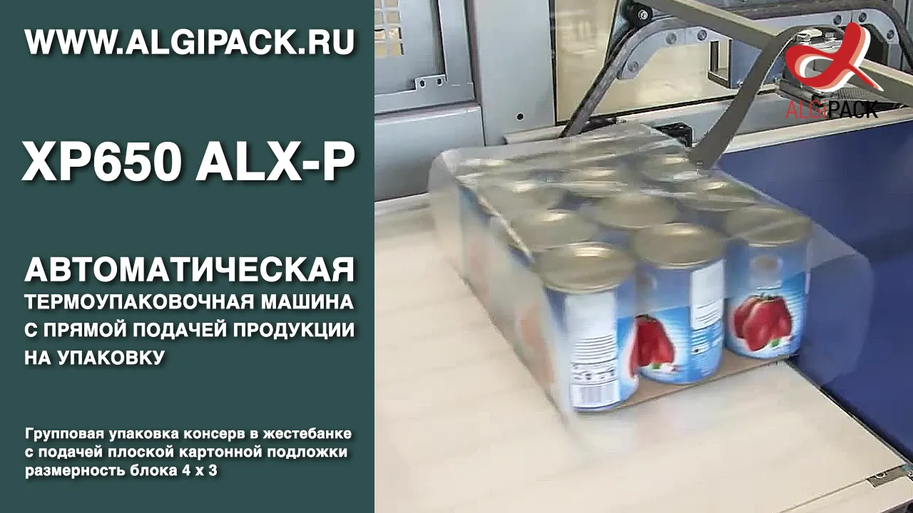 Автоматическая машина с прямой подачей продукции на упаковку способом бесшовного оборачивания продукции термоусадочной пленкой с ее последующей усадкой в термотоннеле. Имеет узел подачи плоской картонной подложки.