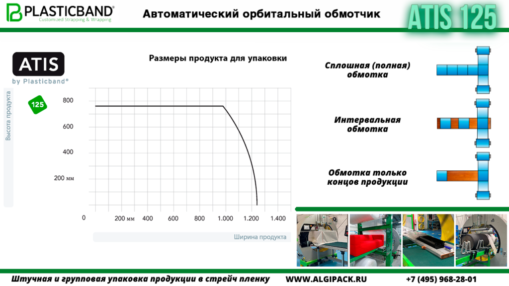 АЛДЖИПАК предлагает самые современные, технологичные, многофункциональные и безопасные орбитальные упаковочные станки. Горизонтальная (орбитальная) автоматическая машина для обмотки продукции стрейч-пленкой ATIS 125. Предназначена для упаковки мебели, дверей, модулей, панелей, шкафов, окон и другой крупногабаритной продукции в  стрейч пленку с высокой производительностью. Используется в составе комплексных автоматизированных упаковочных линий или в качестве отдельного упаковочного поста.