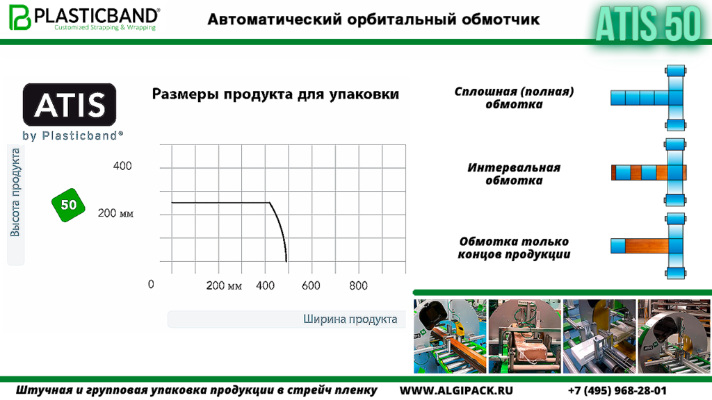 Для определения и выбора модели орбитального обмотчика серии ATIS для Вашего производства, воспользуйтесь таблицей предельных размеров продукта для упаковки, расположенной ниже.