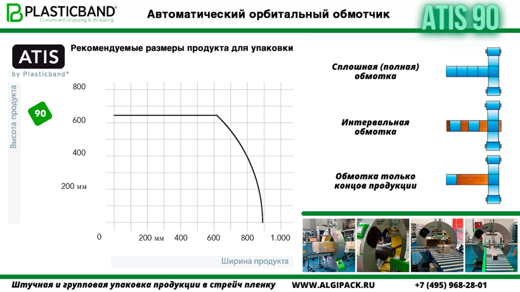 Для определения и выбора модели орбитального обмотчика серии ATIS для Вашего производства, воспользуйтесь таблицей предельных размеров продукта для упаковки, расположенной ниже.