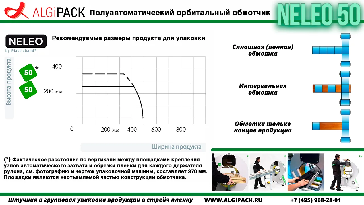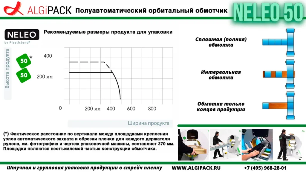 Для определения и выбора модели орбитального обмотчика серии NELEO для Вашего производства, воспользуйтесь таблицей предельных размеров продукта для упаковки, расположенной ниже.