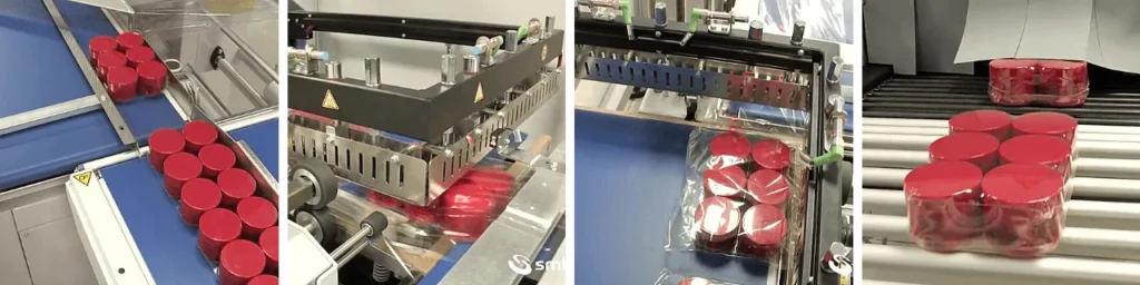 В упаковочной машине заложена возможность работы с двумя основными упаковочными материалами, а именно, термоусадочной полиолефиновой, сокращенно — ПОФ, и термоусадочной полиэтиленовой, сокращенно — ПЭ, пленками толщиной до 50 мкм. Упаковочный материал используется в рулоне в виде полурукава, Материал может иметь перфорацию, наносимую заранее или в процессе упаковки штатными перфорирующими устройствами, входящими в комплект упаковочной машины.
